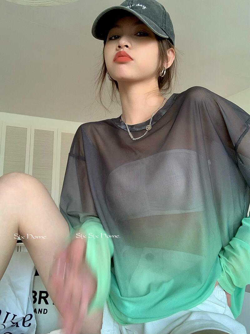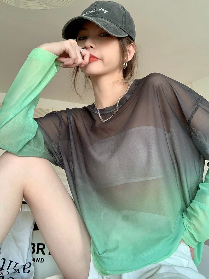 オシャレなグラデーションカラーのレディースロングTシャツ。