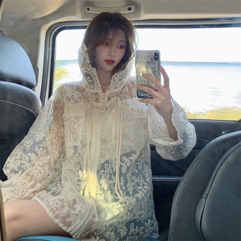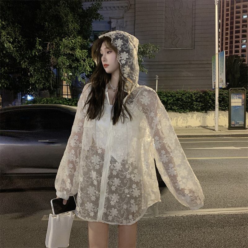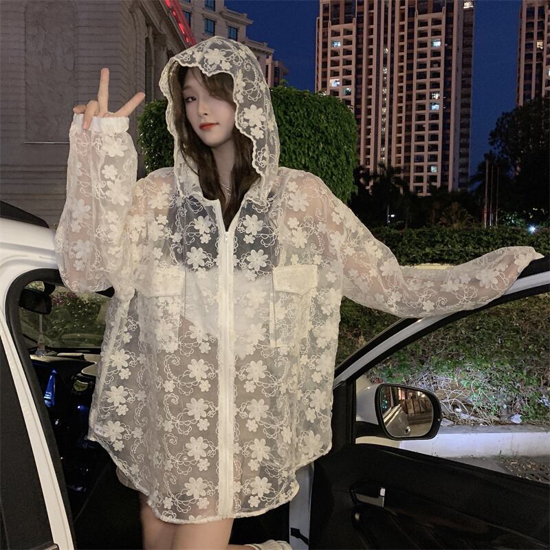 アウター シャンパー パーカー レディース 春 かわいい 軽い 膝上 ミモレ 長袖 ボリューム袖 襟なし フード フレア セミフレア レース フード付き 前開き 透け感 シースルー パステルカラー くすみカラー 大人カラー 春カラー アプリコット ゆったり ゆる ワンサイズ かわいい 大人可愛い きれいめ シンプル カジュアル 大人 上品 おしゃれ 花柄 フラワー 韓国 韓国系 オルチャン ファッション コーデ スタイル 楽ちん モテ 普段使い 重ね着 インスタ映え こなれ感 ラフ マニッシュ