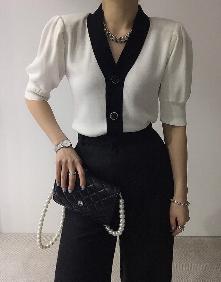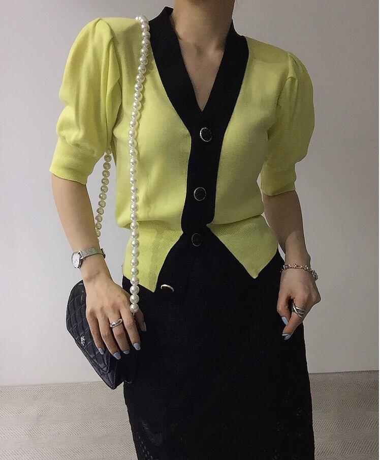 ニットカーディガン レディース 無地 プレーン ニット カーディガン ジャケット アウター 春 夏 おしゃれ お洒落 大人カジュアル 半袖 カジュアル 買い物 お出かけ 女子会 デート 通勤 デイリー 食事会 上品 10代 20代 30代 可愛い かわいい Vネック ルーズ パフスリーブ パフ袖 シンプル ブラック 黒 ホワイト 白 イエロー 黄色 ピンク