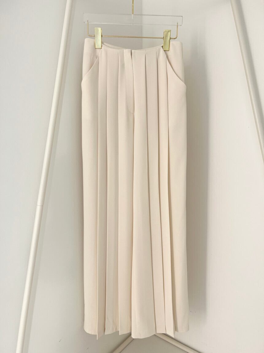トップスにブラウスやシャツ、ニットを合わせれば、余裕のあるオフィスカジュアルが完成。