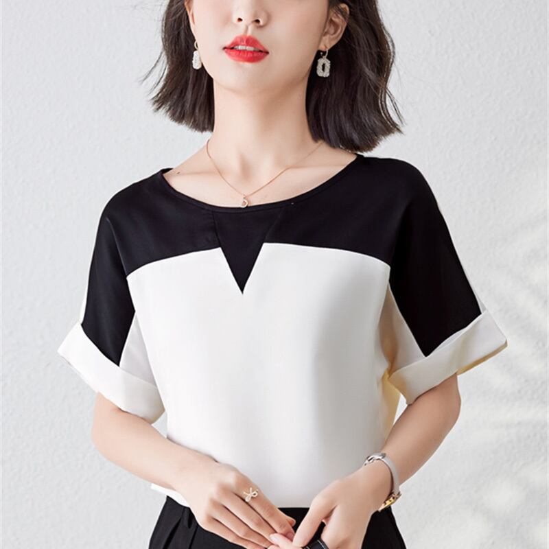 バイカラートップス レディース トップス ブラウス カジュアルブラウス 半袖 袖あり 白×黒 ホワイト×ブラック サマードレス 夏 ラウンドネック S M L XL 2XL 3XL プラスサイズ サイズ豊富 大きいサイズ フェミニン ビジネス オフィス オフィススタイル オフィスワーク 事務 オフィスカジュアル OL 仕事 女子会 休日 韓国 ファッション 涼し気 きれいめ 大人カジュアル 大人可愛い カジュアル 夏らしい 清涼感 普段使い デイリー使い 学生 10代 20代 ゆったり ルーズ