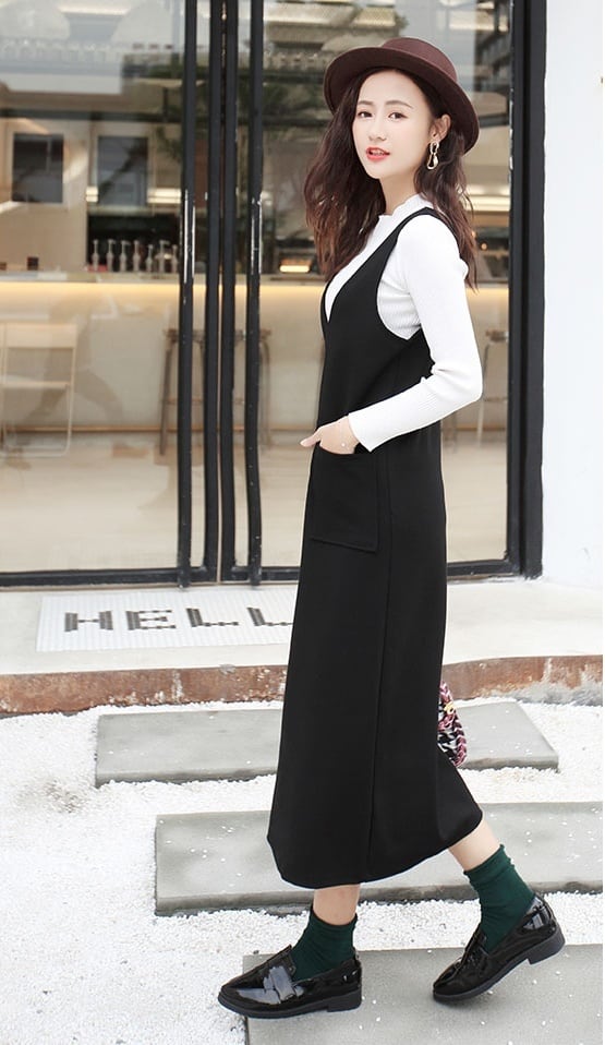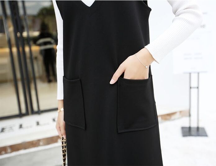 ワンピース レディース 秋冬 大きいサイズ レディース ジャンパースカート ジャンスカ シンプル 無地 Vネック 膝丈 ミディアム かわいい きれいめ おしゃれ 大人 上品 ミモレ丈 膝下 マタニティ ゆったり 体型カバー 重ね着 カジュアル 袖なし 通勤 黒 20代 30代 40代 50代 ミドル丈 ハイウエスト Aラインスカート ロングスカート ノースリーブ ブラック 黒