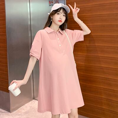 マタニティ用 ワンピース レディース マタニティ 半袖 ミドル丈 スカート ポロシャツ ポロ襟 ルーズウエスト デート 女子会 買い物 ショッピング ゆったり 個性 韓国 韓国ファッション 大人カジュアル カジュアル 大人可愛い シンプル 可愛い かわいい ショートスカート 春 夏 ミドル丈ワンピース ピンク グレー 灰色