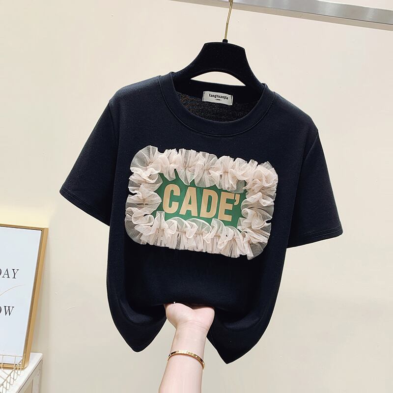 Tシャツ レディース プルオーバートップス ホワイト ブラック 袖あり 半袖 ラウンドネック クルーネック ゴージャス 派手 薄手 かわいい 大人可愛い カジュアル オシャレ お洒落 大人女子 こなれ感 デイリーユース 白 黒 夏 サマー 10代 20代 30代 休日 学生 通学 デート お出かけ 買い物 ファッション S M L XL 2XL 3XL サイズ豊富