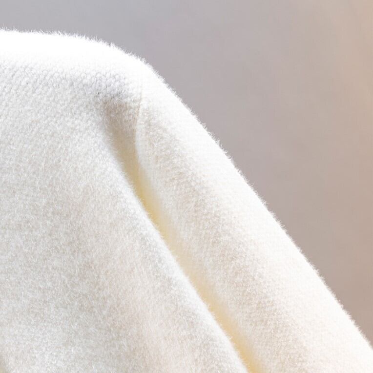 フロントのパールボタンが華やかな雰囲気をプラスし、前を閉めてプルオーバーとしても、カーディガンとしても気軽に羽織れます。
