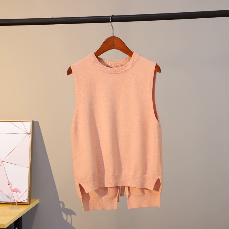 トップス ニットソー ベスト 袖なし ノースリーブ ラウンドネック クルーネック リボン バックスリット バックシャン バックコンシャス 大人可愛い きれいめ シンプル 大人 上品 大人女子 ガーリー 抜け感 無地 春 秋 誕生日 20代 30代 オフィス ビジネス OL 通勤 デート 女子会 リゾート 旅行 着回し 普段使い 重ね着 韓国系 オルチャン 白 黒 黄色 ピンク パステルカラー くすみカラー モノトーン 春カラー