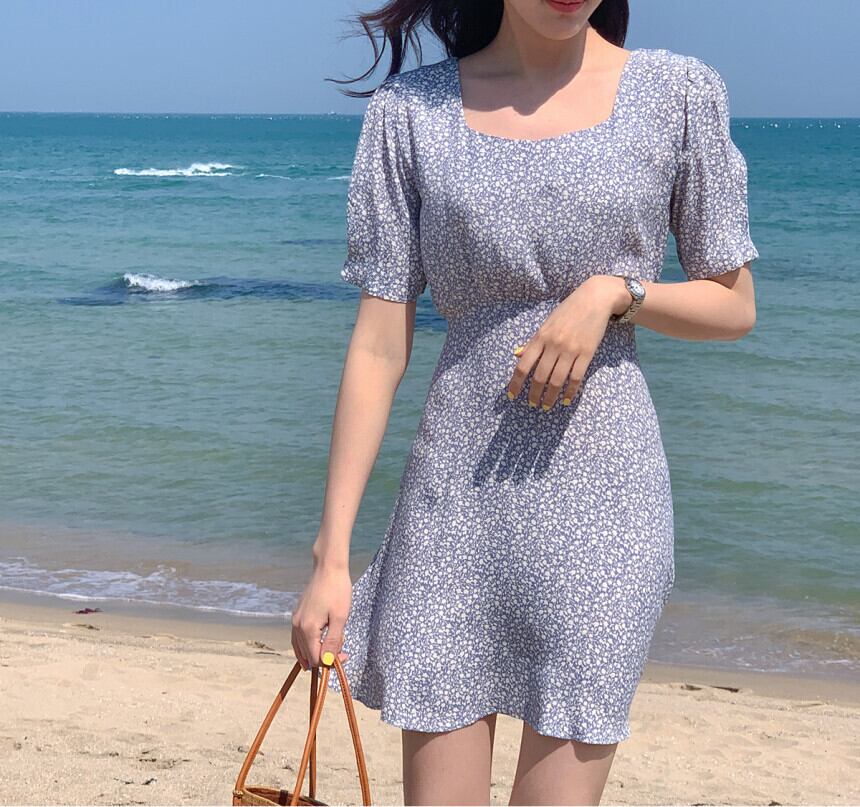 小花柄 レトロ パフスリーブ ワンピース ミニ丈 膝丈 ボリューム袖 フレアタイプ スクエアネック 上品 袖あり 半袖 かわいい 大人可愛い おしゃれ フェミニン 大人女子 ラブリー フォーマル 個性的 存在感 抜け感 二次会 合コン 食事会 謝恩会 パーティ バレンタイン デート 春 夏 誕生日 レディース 女性用 10代 20代 30代 デート お出かけ OL 通勤 オフィス 学生 通学 女子会 休日 レストラン イベント 旅行 海 ママ 公園 ママ会 フリーサイズ インスタ映え ブルー 水色 青