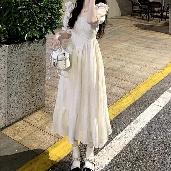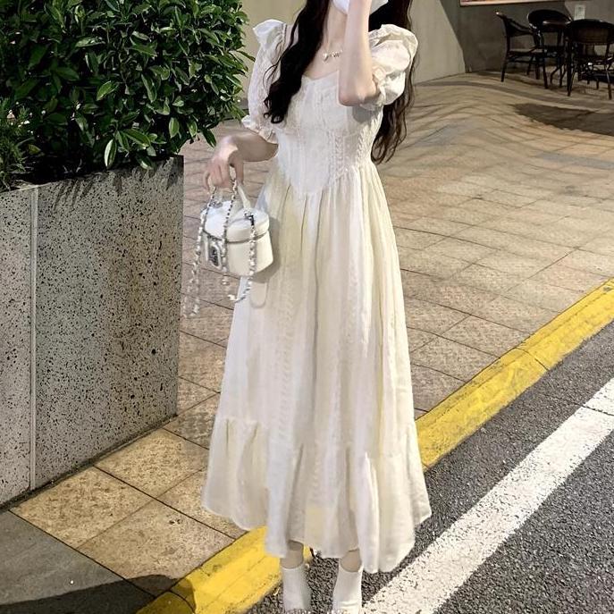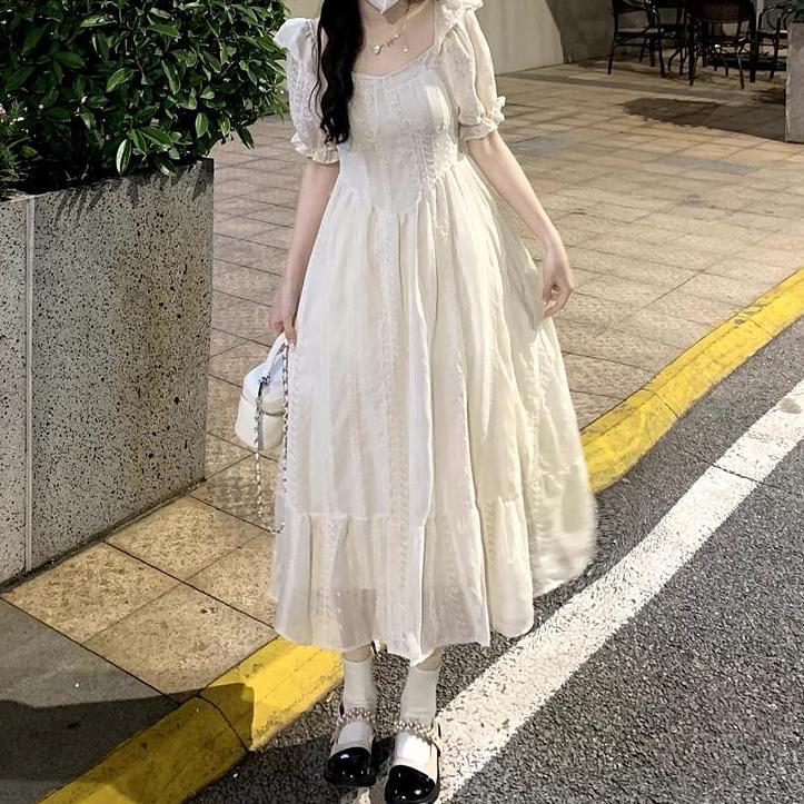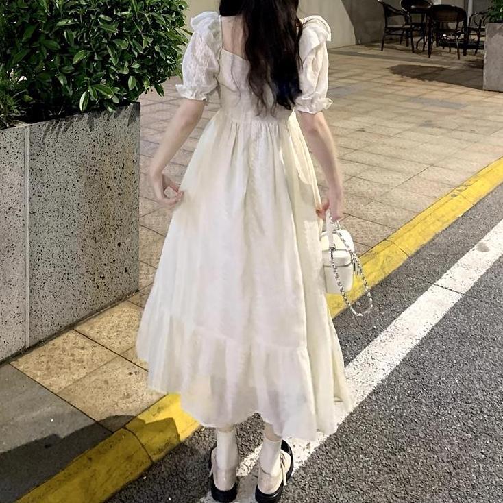 送料無料 個性的 春服 夏服 レディース ワンピース コスプレ フレア ミモレ ロング 袖あり 半袖 フリル袖 スクエアネック 襟なし フリル インスタ映え モテ 流行 トレンド 高見え コーディネート アプリコット S M L フリーサイズ ナチュラル カジュアル かわいい ガーリー キュート ラブリー こなれ感 とろみ感 抜け感 大人可愛い 春 夏 秋 お花見 合コン コンパ 通学 デート お出かけ 公園デビュー 女子会 お泊まり 休日 旅行 学生 高校生 大学生 ママ 10代 20代 30代