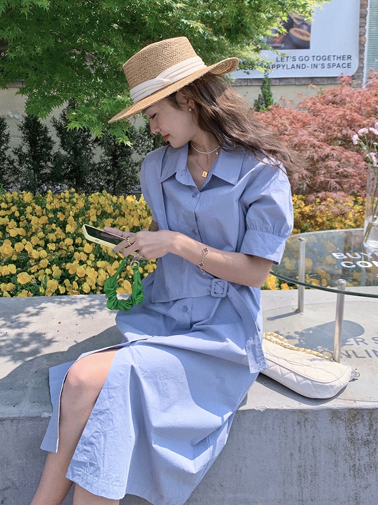 夏服 ワンピース ギャザー シャツワンピース ロジスワンピ 送料無料 個性的 ひざ丈 袖あり 五分袖 バルーン袖 二の腕カバー 襟付き レギュラーカラー ストレート Iライン 前開き ベルト バック 後ろ ウエスト ボタン インスタ映え SNS 映え 高見え 細見え 韓国 オルチャン ベーシック シンプル ナチュラル カジュアル ガーリー コンサバ 清楚 モダン こなれ感 デキる女風 抜け感 上品 大人可愛い オフィス 通勤 デート お出かけ アウトドア 旅行 海 プール コンサート ライブ フェス