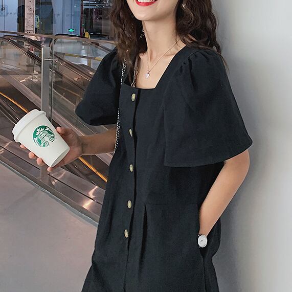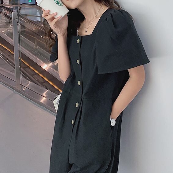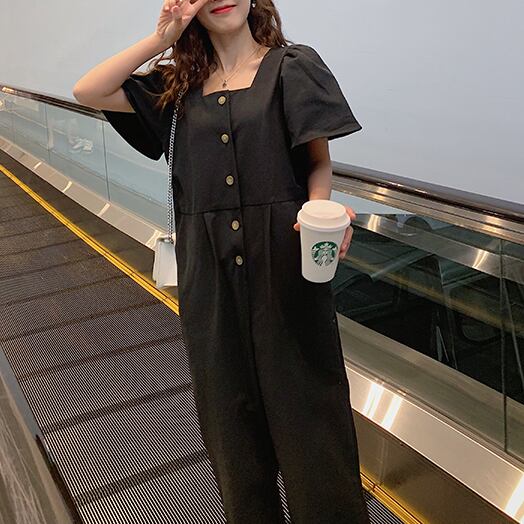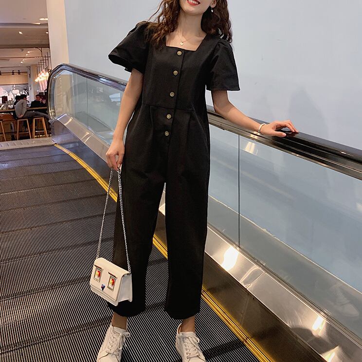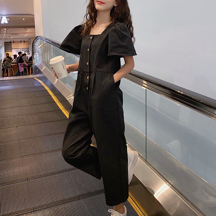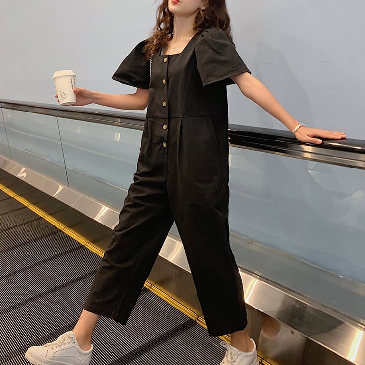 オールインワン レディース パフスリーブ 送料無料 個性的 人気 通販 春服 夏服 ぽわん袖 スクエアネック 前開き ボタン SNS 映え モテ 流行 トレンド 高見え 楽ちん 着やせ 効果 無地 ブラック S M L XL ゆったり ナチュラル カジュアル かわいい エレガント きれいめ クール ボーイッシュ ラフ おしゃれ こなれ感 抜け感 上品 大人可愛い 通学 デート お出かけ 公園デビュー 女子会 休日 アクティブ アウトドア イベント リゾート 旅行 ガーデン 学生 10代 20代 30代