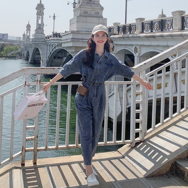 デニム素材のジャンプスーツです。