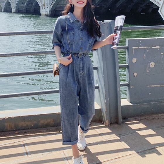 オールインワン レディース デニム ジャンプスーツ 送料無料 個性的 春服 夏服 アンクル丈 襟付き ウエストマーク SNS 映え 写真 映え モテ 流行 トレンド 高見え 格上げ 無地 ブルー 青 ライトブルー S M L XL ベーシック シンプル ナチュラル カジュアル かわいい ガーリー セクシー フェミニン クラシカル 清楚 クール かっこいい ラフ おしゃれ こなれ感 存在感 上品 大人可愛い デート お出かけ 女子会 休日 アクティブ パーティー イベント 旅行 学生 10代 20代 30代