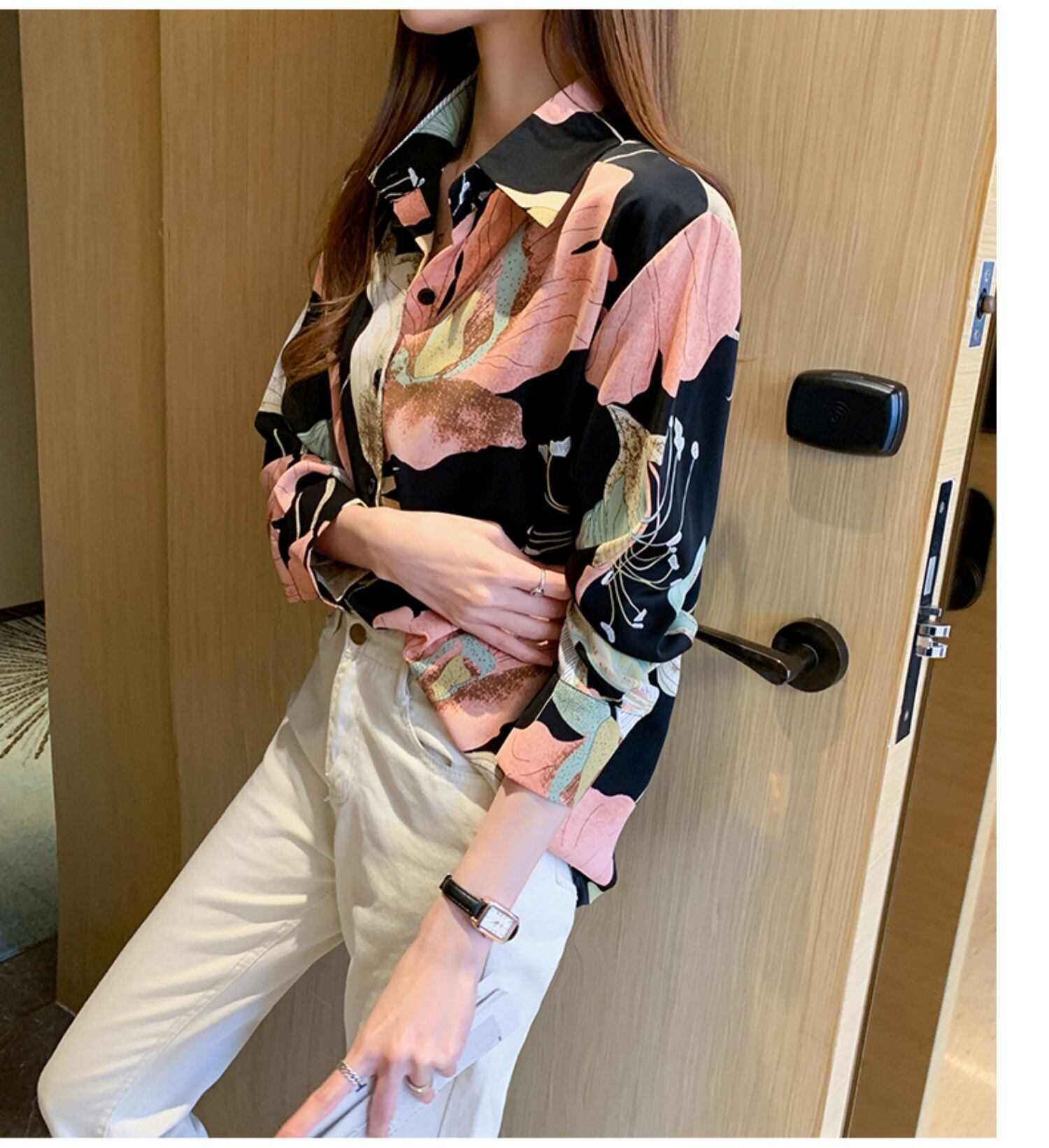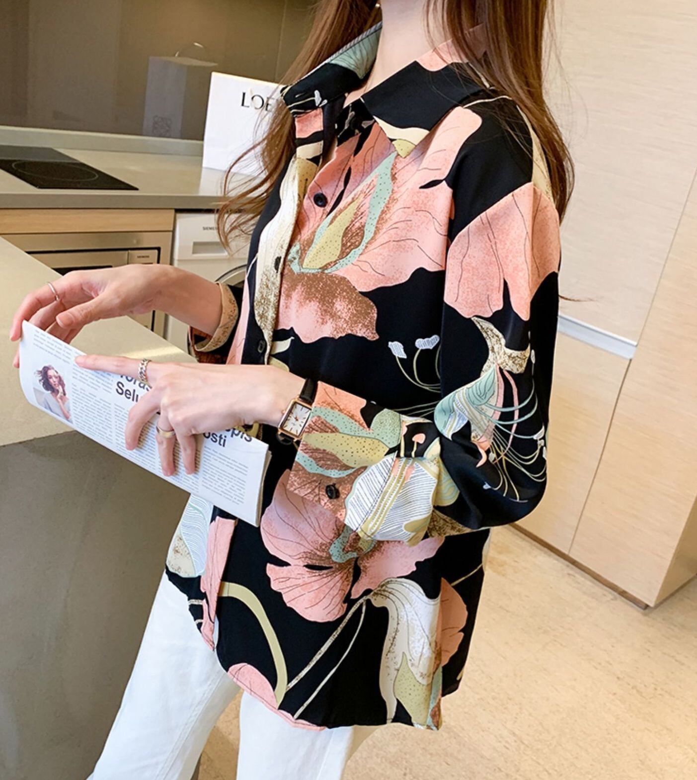 トップス レディース シャツ ブラウス 柄シャツ 送料無料 個性的 長袖 ボタンダウン 襟付き 角襟 前開き 目立つ 流行 トレンド 高見え 格上げ 着回し コーディネート スタイル お揃い 女子ウケ 花柄 フラワー ブラック S M L XL シンプル ナチュラル かわいい ガーリー きれいめ フェミニン ルーズ ラフ おしゃれ こなれ感 存在感 大人可愛い セレブ 派手 春 秋 冬物 飲み会 インスタ映え 通学 デート お出かけ 休日 外遊び 10代 20代 30代 40代 50代