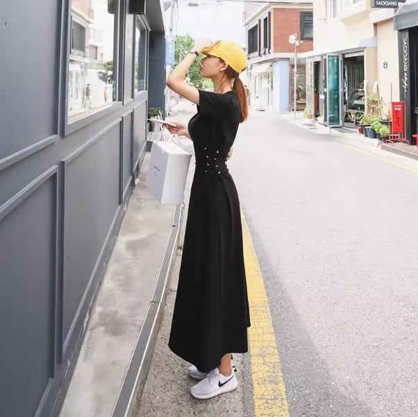 柔らかなコットン素材で作られたこのワンピースは、カットソースタイルでゆったりとした着心地です。アンクル丈のレングスが、スタイリッシュな印象を与えます。また、ラウンドネックと細身のIラインが、女性らしいシルエットを作り出します。サイドにあしらわれたレースアップデザインは、細見え効果と着痩せ効果を与えてくれます。
