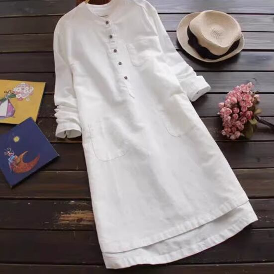 長袖 ソリッドカラー ミドル丈 シャツワンピース トップス ワンピース Vネック シャツ 送料無料 秋 お腹周り ポッコリお腹カバー 襟なし Aライン ボタン 色展開 カラバリあり ブラック 黒 ホワイト 白 赤色 レッド 緑色 カーキグリーン グリーン ピンク ネイビー 藍色 無地 サイズ豊富 M L XL(LL) 2XL(3L) 3XL(4L) 4XL(5L) 5XL(6L) 大きめ ビッグサイズ ゆったり 大きいサイズ リネン風 1枚で決まる 普段使い デイリー 定番 着回し カジュアル