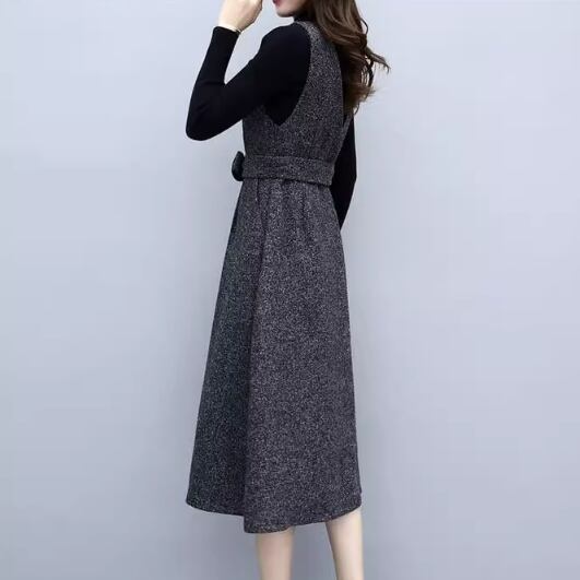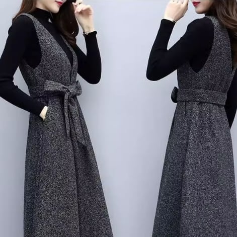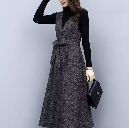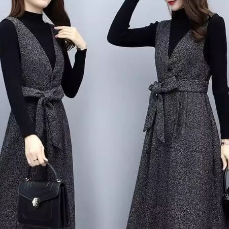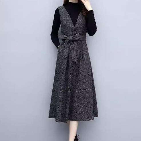 2点セット リボン スリム サスペンダースカート ニット トップス ワンピース セットアップ 上下セット カットソー 送料無料 秋コーデ 冬コーデ ミモレ ミディアム 長袖 ラウンドネック タイト ブラック 黒 グレー 灰色 無地 サイズ豊富 M L XL(LL) 2XL(3L) 3XL(4L) 4XL(5L) 5XL(6L) ビッグサイズ 大きいサイズ モテ 高見え 楽ちん 美脚 脚長 若見え 普段使い 日常使い デイリー 定番 コーディネートしやすい 重ね着 ベーシック シンプル 秋 冬 通勤