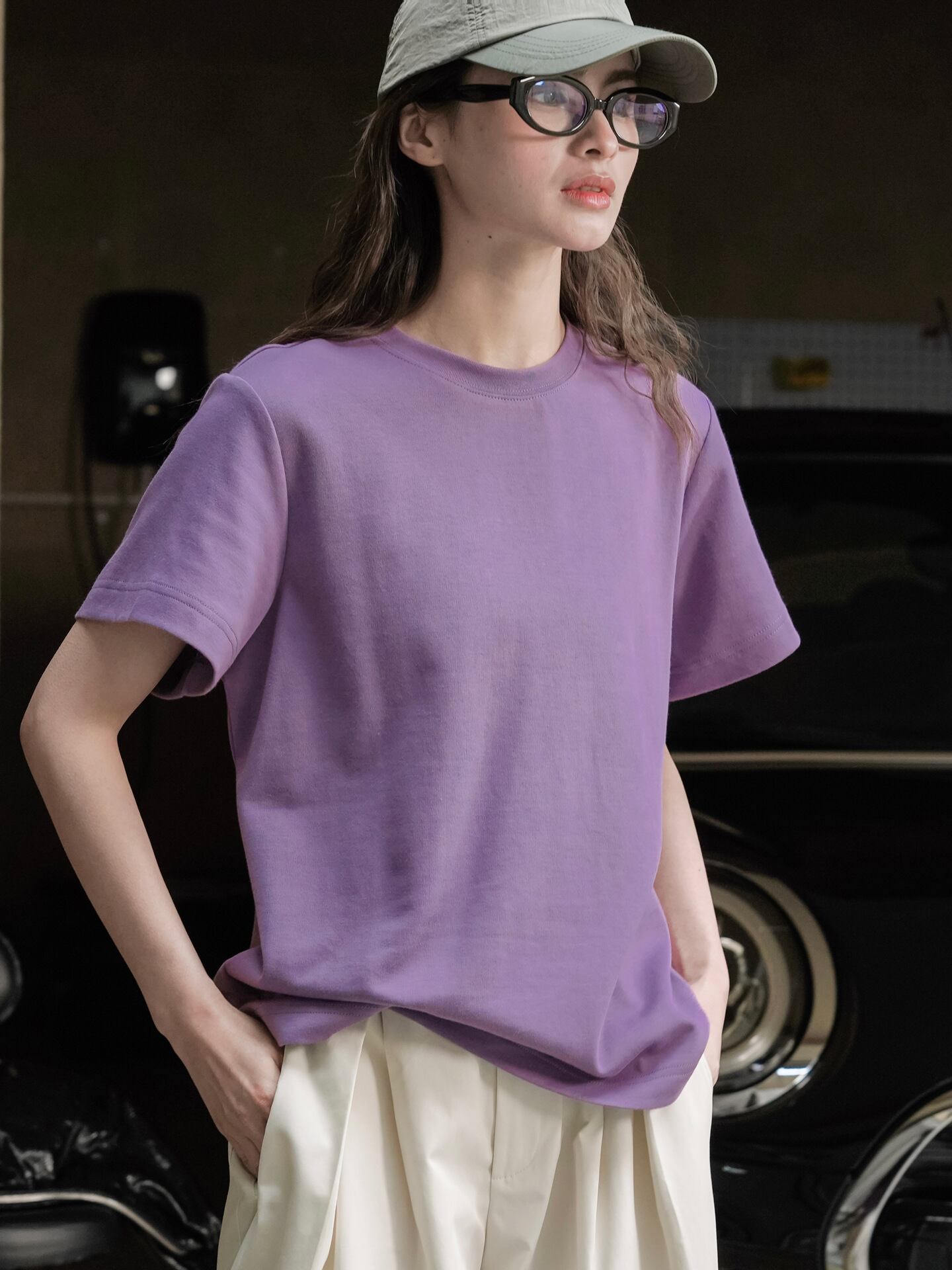Tシャツ オールシーズン 半袖 クルーネック 丸首 カラバリあり ブラック 黒 ホワイト 白 パープル 無地 S M 体型カバー 流行 トレンド 普段使い 日常使い 楽ちん プチプラ 美脚 脚長 華奢見え 細見え 着痩せ 効果 定番 着回し デイリー 合わせやすい コーディネートしやすい スタイルアップ ベーシック シンプル カジュアル 大人可愛い 10代 20代 30代 40代 50代 60代 インスタ映え SNS 映え
