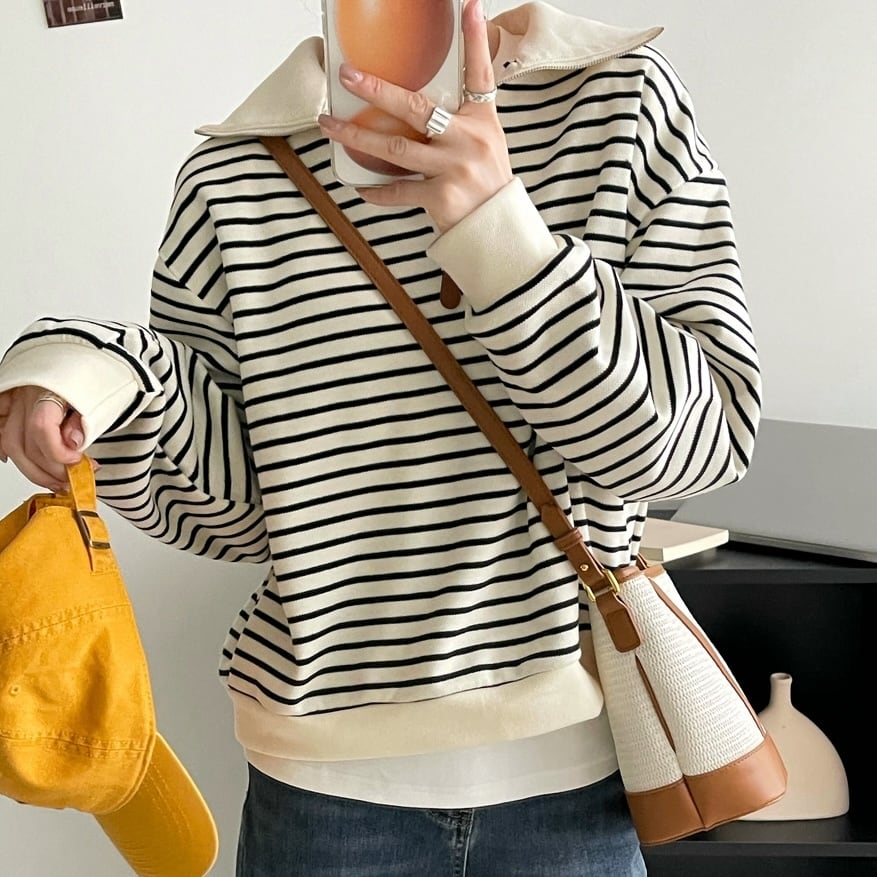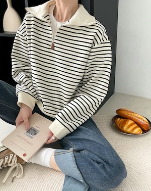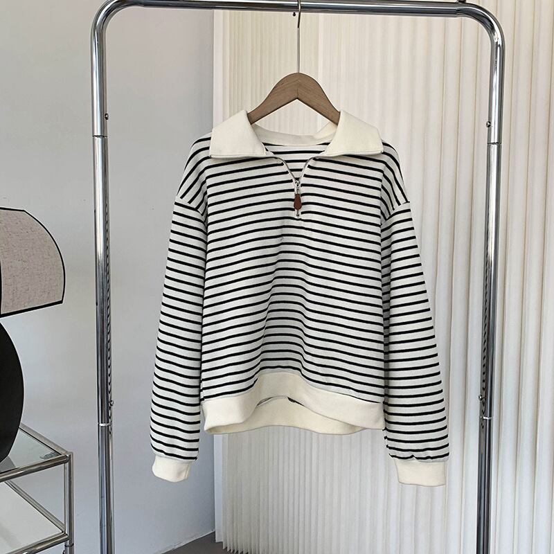 トップス レディース カットソー ポロシャツ 個性的 春 秋 冬 ミドル丈 長袖 襟付き 大きな襟 ジップ ファスナー ブラック ホワイト ボーダー M L ポリエステル 学校 バイト 外遊び 定番 デイリー ベーシック ナチュラル レトロ おしゃれ 抜け感 上品 爽やか 好感度 10代 20代 30代 女子会 アクティブ アウトドア