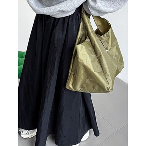 ナイロン素材で軽やかな履き心地のフレアロングスカート。