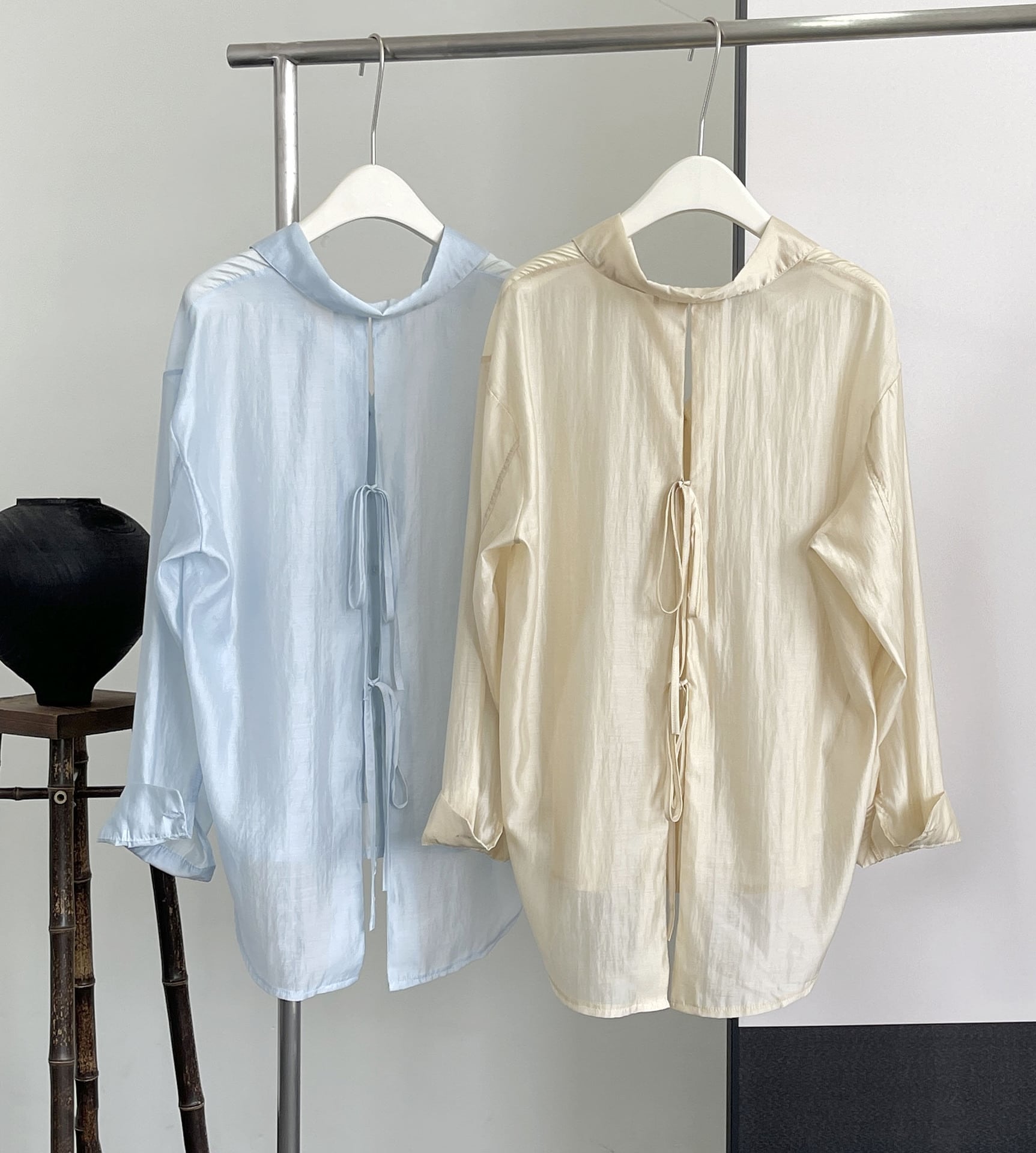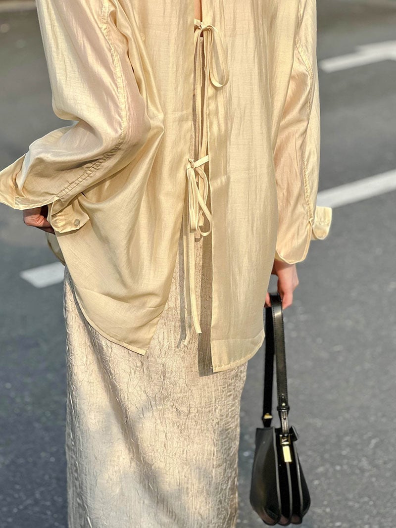 バックコンシャス トップス レディース シャツ ブラウス 白シャツ 個性的 春 夏 秋 淡色コーデ ミドル丈 長袖 襟付き ストレート 前開き 透け感 シースルー シアー ツヤ感 ホワイト ライトブルー シャンパンイエロー 無地 M L 薄手 オフィス パーティー イベント 仕事 流行 トレンド 高見え 格上げ シンプル ナチュラル きれいめ クール デキる女風 抜け感 存在感 女っぽ 大人可愛い 20代 30代 40代 セレモニー 同窓会 謝恩会 デート