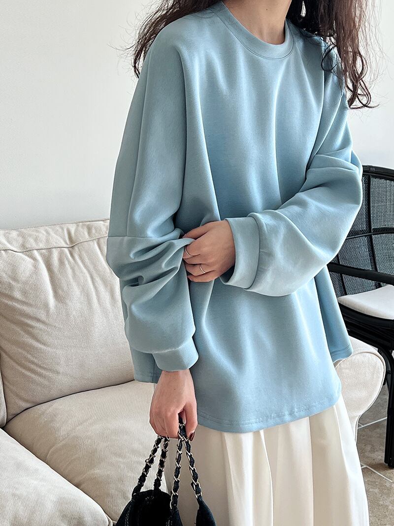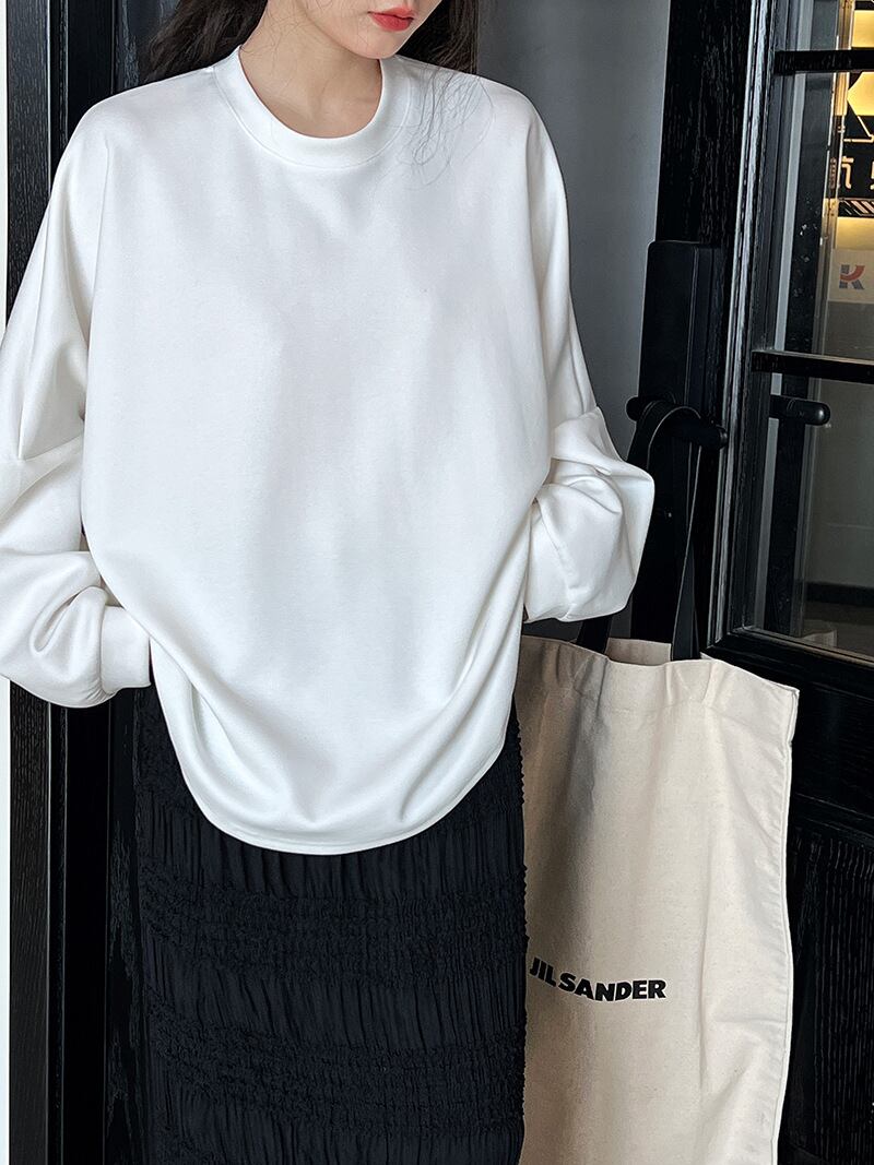 トップス カットソー トレーナー 春 秋 冬 長袖 クルーネック 丸首 ワイド グレー ホワイト ブルー M L オフィス 学校 大学 イベント 旅行 ガーデン レストラン コンサート ライブ 外遊び 外出 体型カバー 普段使い 日常使い 楽ちん 着回し デイリー 合わせやすい 韓国 モテ ベーシック シンプル ナチュラル カジュアル かわいい ガーリー キュート エレガント きれいめ セクシー 清楚 大人可愛い レディライク 爽やか OL 学生 10代 20代 30代 女子会 休日 お出かけ ホワイト