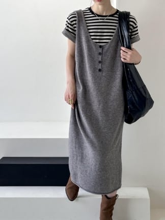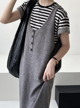 スカート レディース サスペンダースカート ニットワンピ 秋 ひざ下 ミモレ丈 ミディアム丈 ミドル丈 袖なし Uネック ストレート 落ち感 透け感 伸縮性 ブラック 黒 ライトグレー 秋カラー 無地 ゆったり フリーサイズ ニット リゾート 旅行 体型カバー 1枚で決まる 普段使い 日常使い 楽ちん 着痩せ 効果 定番 デイリー 合わせやすい 暖かい ベーシック シンプル ナチュラル カジュアル きれいめ ラフ こなれ感 抜け感 大人可愛い 好感度 20代 30代 40代 休日 デート お出かけ