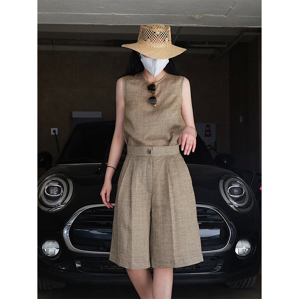 クルーネック&袖なしのシンプルデザインで、どんなボトムスとも好相性♪