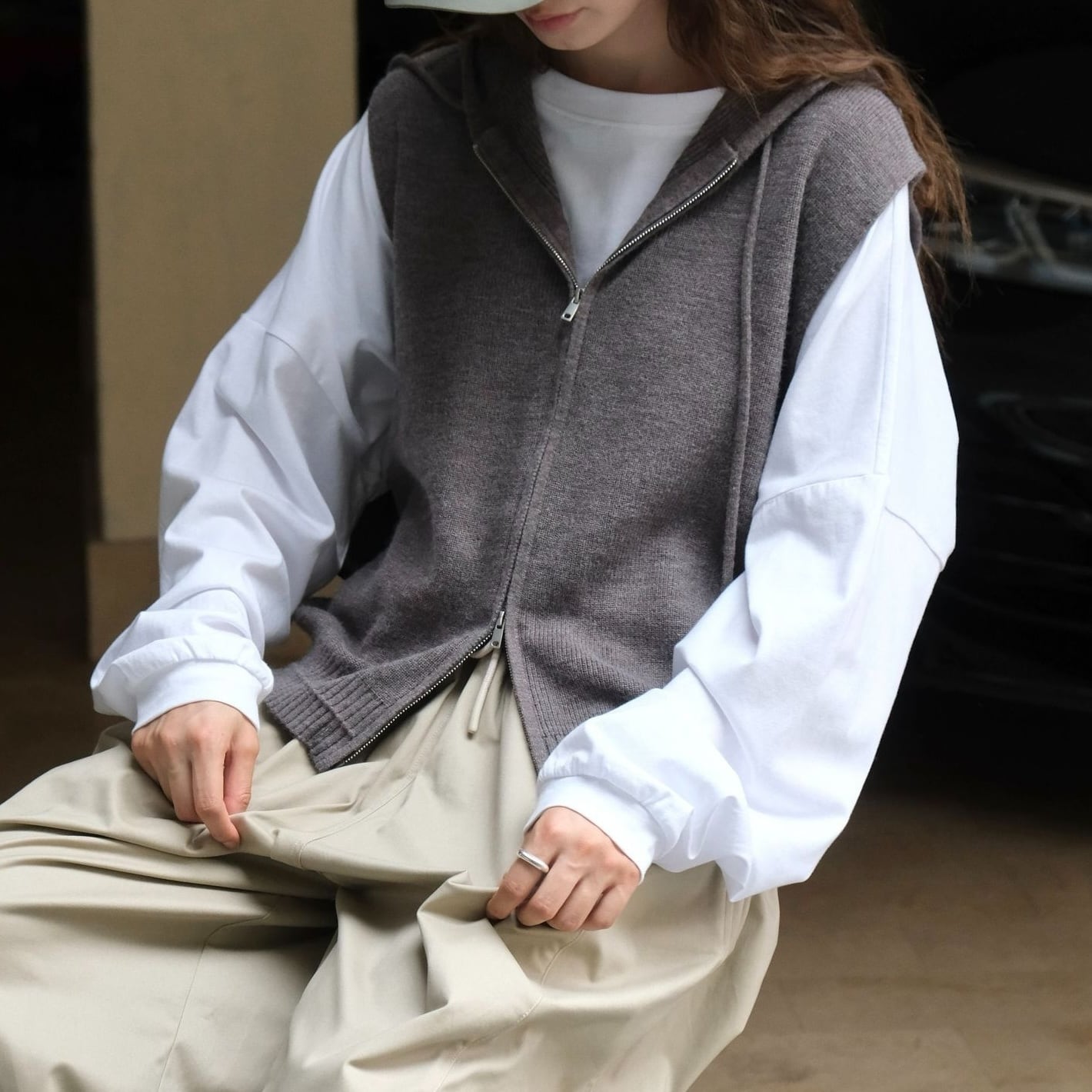 フード付きのデザインベストです。シンプルなデザインながら個性的なアクセントが光る一枚。袖や襟がないスタイルで、春から冬まで幅広く着回せるアイテムです。フードやジップ、グレーからネイビーまでのカラーバリエーションも魅力的。大学生や社会人、アクティブな女性におすすめ。着心地の良さと抜け感を求めるなら、ぜひ一着持っていて欲しい一着です。