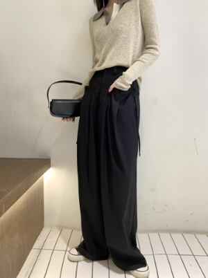 ハイウエストでウエストラインを美しく引き立てるワイドパンツです。オーバーサイズのシルエットがトレンド感たっぷりで、リラックス感も演出してくれます。ポケット付きで実用性も◎。ベーシックなカラー展開で、幅広いコーディネートに対応します。落ち感のある素材感が美脚効果を演出し、さりげない華奢見えを叶えてくれます。