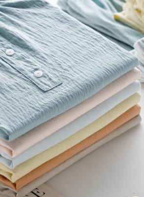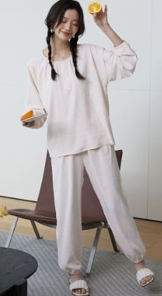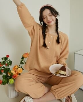 上質な着心地と豊富なカラーバリエーションが自慢のパジャマ上下セットです。春の夜にぴったりなミドル丈で愛らしいデザインです。ラウンドネックでストレートなシルエットがおしゃれで大人可愛い印象を与えます。オーバーサイズでゆったりとした着心地なので、体型を気にせずリラックスしてお使いいただけます。