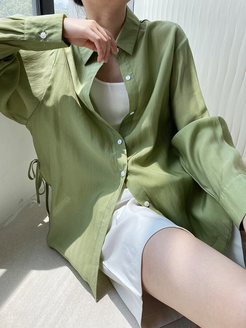 トップス シャツ ブラウス 春 秋 冬 長袖 襟付き リボン 透け感 オーバーサイズ ホワイト グリーン ブラウン M L 学校 イベント リゾート 旅行 高原 ホテル ガーデン ライブ 外出 体型カバー 重ね着しやすい 普段使い 日常使い 楽ちん 華奢見え 細見え 着痩せ 効果 着回し 合わせやすい コーディネートしやすい お嬢様 使いやすい ベーシック シンプル ナチュラル カジュアル かわいい ガーリー キュート エレガント きれいめ 清楚 おしゃれ こなれ感 存在感 10代 20代 30代
