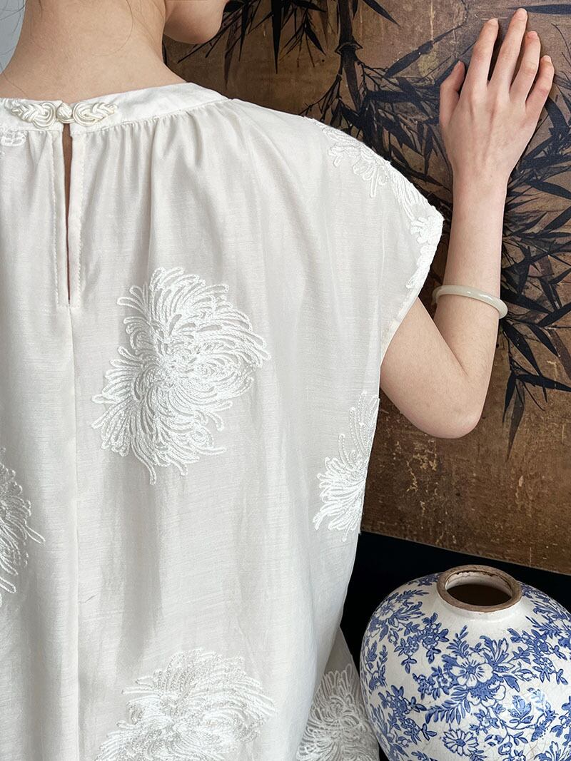 優雅でシックなチャイナ風の花柄刺繍が印象的なトップスとスカートのセットアップが登場しました。透け感のあるシアー素材が女性らしさを引き立て、春夏の季節にぴったりの半袖デザインで涼しげな着こなしを叶えます。クルーネックの首元がエレガントな印象を与え、さりげない華やかさを演出します。