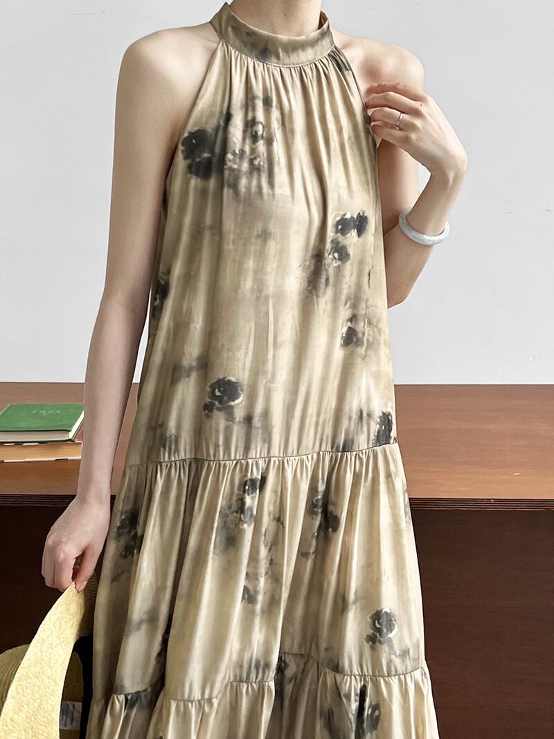 ワンピース ティアード ノースリーブ 春 夏 ロング丈 袖なし リボン ベージュ 花柄 フラワー M L 体型カバー 1枚で決まる スニーカーコーデ 流行 トレンド 普段使い 日常使い 楽ちん プチプラ 美脚 脚長 着痩せ 効果 高見え 格上げ 定番 着回し デイリー 合わせやすい コーディネートしやすい 使いやすい ベーシック シンプル ナチュラル カジュアル かわいい キュート ラブリー ラフ こなれ感 大人可愛い 10代 20代 30代 40代 50代 60代 お出かけ インスタ映え SNS 映え