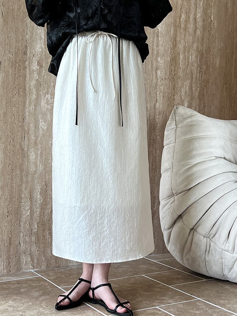 スカート オールシーズン ロング丈 ドロスト ホワイト 白 無地 M L しわ感 体型カバー 1枚で決まる スニーカーコーデ 流行 トレンド 普段使い 日常使い 楽ちん プチプラ 美脚 脚長 着痩せ 効果 高見え 格上げ 定番 着回し デイリー 合わせやすい コーディネートしやすい 使いやすい ベーシック シンプル ナチュラル カジュアル かわいい キュート ラブリー ラフ こなれ感 大人可愛い 10代 20代 30代 40代 50代 60代 お出かけ インスタ映え SNS 映え