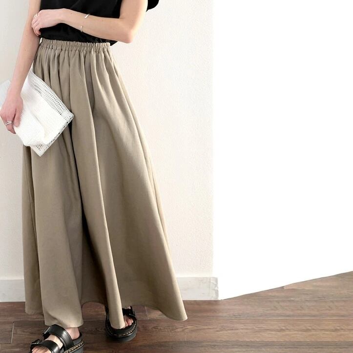 スカート ボトムス 春 秋 冬 ひざ下 ロング丈 フレア ウエストゴム ブラック アプリコット ブラウン イエロー フリーサイズ 学校 イベント ガーデン レストラン コンサート ライブ 外出 体型カバー 1枚で決まる スニーカーコーデ 普段使い 日常使い 楽ちん 細見え 着痩せ 効果 着回し デイリー スタイルアップ 使いやすい ベーシック ナチュラル カジュアル かわいい ガーリー キュート ラブリー きれいめ おしゃれ こなれ感 抜け感 存在感 主役級 大人可愛い 10代 20代 30代 40代