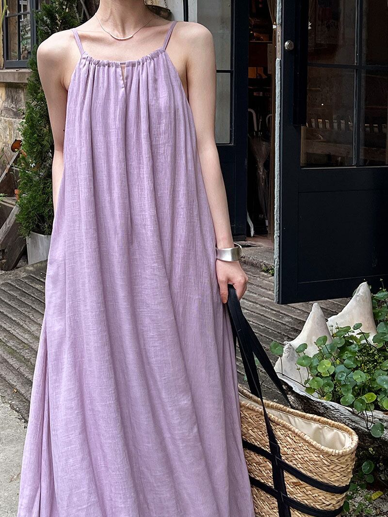 ワンピース キャミワンピ マキシ丈 袖なし デコルテきれい Aライン 淡色 ベージュ ピンク 無地 M L リゾート 体型カバー 1枚で決まる スニーカーコーデ 流行 トレンド 普段使い 日常使い 楽ちん プチプラ 美脚 脚長 着痩せ 効果 格上げ 定番 着回し デイリー 合わせやすい 真夏 ベーシック シンプル ナチュラル カジュアル かわいい ガーリー キュート ラブリー こなれ感 大人可愛い 10代 20代 30代 40代 50代 60代 インスタ映え SNS 映え