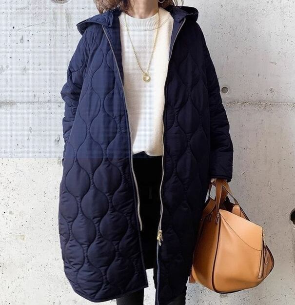 アウター レディース 上着 ジャケット シャンパー ジップアップ キルティング ミディアム 冬 ひざ丈 長袖 ストレート フード ファスナー ジップ ポケット 前開き オーバーサイズ 落ち感 もこもこ ふっくら ハリ感 黒 ネイビー ダークグリーン ゆったり フリーサイズ 厚手 リゾート 旅行 外出 体型カバー 普段使い 日常使い 細見え 定番 真冬 防寒 暖かい ベーシック シンプル カジュアル おしゃれ こなれ感 抜け感 20代 30代 40代 50代 お迎えコーデ 休日 デート お出かけ