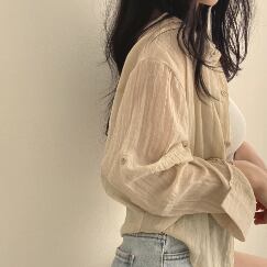 しわ感が上品な雰囲気を演出し、シアーな素材感が女性らしさを引き立て、普段使いはもちろん、オフィスやパーティー、リゾートやイベントなどさまざまなシーンで活躍する一枚です。お手持ちのボトムスと合わせるだけで、簡単におしゃれなコーディネートが完成します。