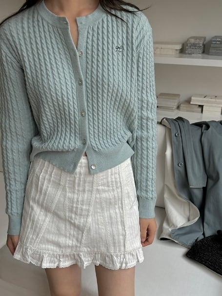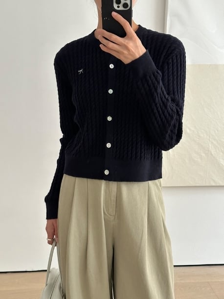 ふっくらとした質感がフェミニンなカーディガンは、秋の装いにぴったりのアイテムです。独特のケーブル編みが施されたデザインは、シンプルながらも個性を演出してくれます。裾が短めなので羽織りやすく、コーディネートの幅も広がります。伸縮性のある素材で着心地も抜群です!