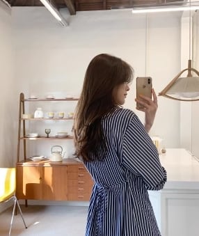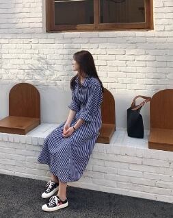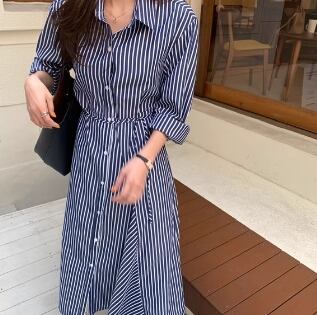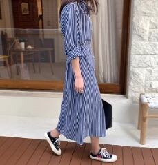 ストライプの縦長効果で、スタイルアップが叶うワンピースです。爽やかな印象で、丈感が女性らしさを演出してくれます。普段使いから、デートや旅行など、ラフに着こなせるおすすめの1着です。