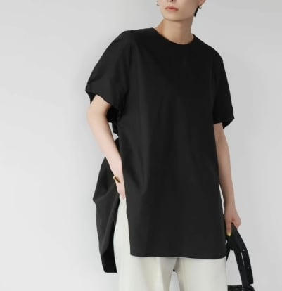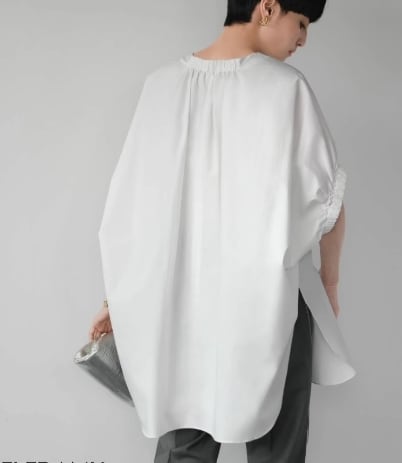 袖のデザインがアクセントになっていて、サイドスリットが軽やかに見せてくれます。