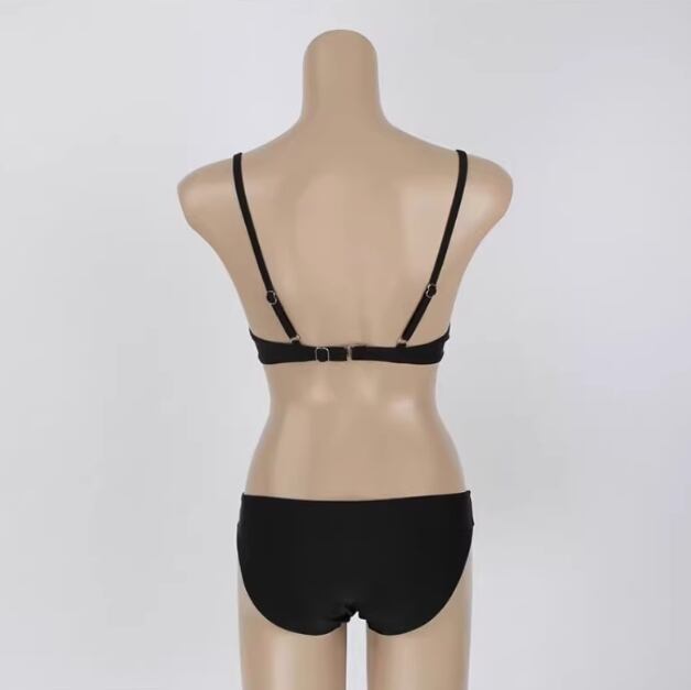 大人可愛いスタイルを実現する、シンプルでおしゃれな三角ビキニです!セパレートデザインは体型を美しく見せるだけでなく、着脱も簡単。無地のブラックは、引き締め効果抜群で、スタイルアップも叶えます。華やかさとクールさを兼ね備えたおすすめの一着です!