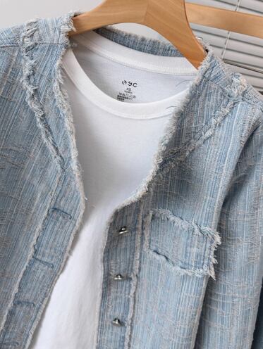 デニム ジャケット アウター レディース 上着 春 秋 普通丈トップス 長袖 Vネック 襟なし ライトブルー 無地 M L XL LL 2XL 3L 3XL 4L 4XL 5L ブルーデニム 旅行 外出 若見え 高見え 格上げ 定番 着回し 合わせやすい 使いやすい モテ ベーシック シンプル ナチュラル カジュアル ガーリー きれいめ かっちり クール おしゃれ こなれ感 抜け感 存在感 主役級 20代 30代 40代 お迎えコーデ デート お出かけ インスタ映え SNS 映え 写真 映え