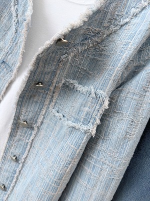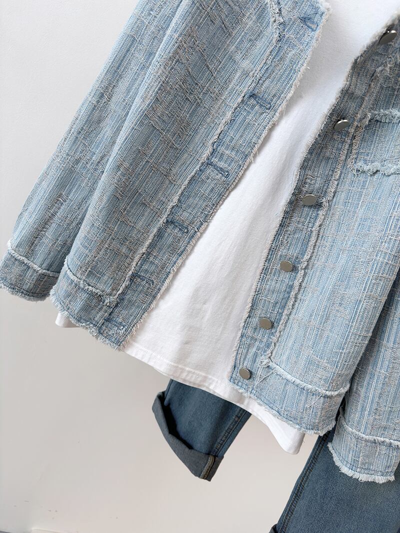 ライトブルーのデニムジャケットでおしゃれを格上げ。
