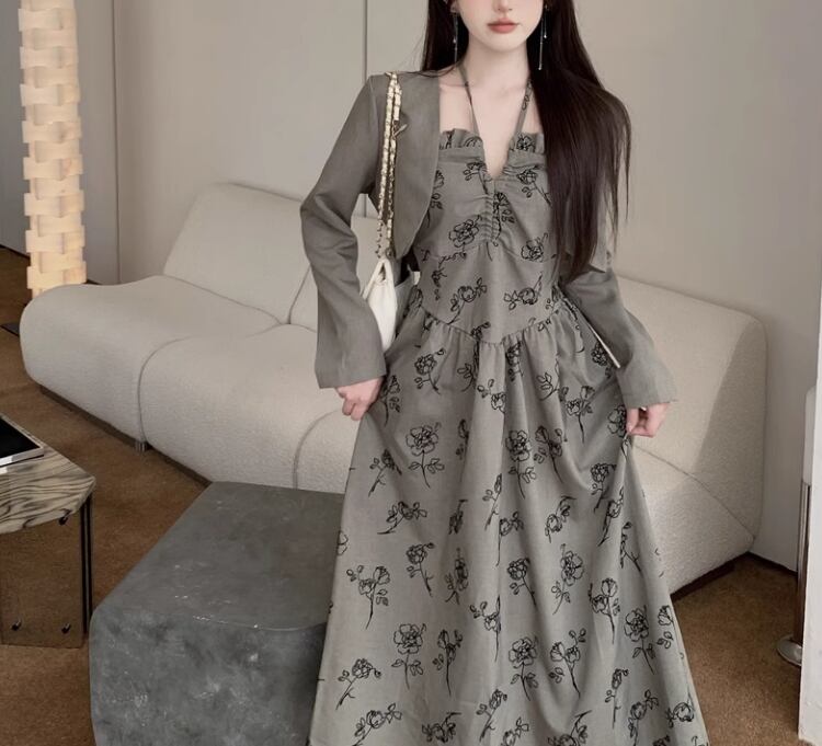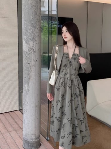 秋のトレンドを抑えた、花柄キャミワンピ&ジャケットの2点セットでおしゃれを格上げ。