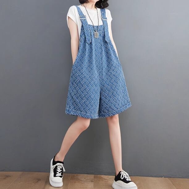 生地感がお洒落なゆったりシルエットのサロペットです!ショートパンツ丈のため、フレッシュでアクティブな印象を与え、体型カバー&華奢見えが叶います。どんなコーディネートにも相性抜群で、重ね着もしやすく便利です。普段使いやお出かけはもちろん、休日のリラックスタイムにもぴったりな一枚です。