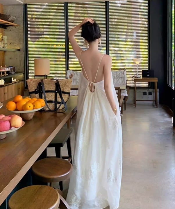 エレガントで涼しげな印象のビーチドレスです!ホワイトアプリコットのカラーが華やかさを引き立て、ビーチやリゾートシーンにぴったりな一着です。肩だしデザインやフレアシルエットが女性らしさを際立たせ、体型カバー効果も嬉しいポイントです。透け感のあるシフォン素材が軽やかさと落ち感を演出し、1枚でコーディネートが決まります。バックにリボンがあるタイプと、バックレスタイプからお選びいただけます。