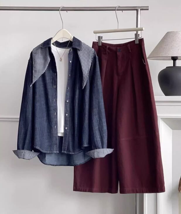 チェック柄のアクセントがお洒落なデニムシャツです。