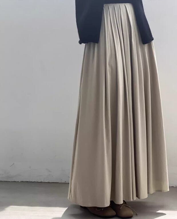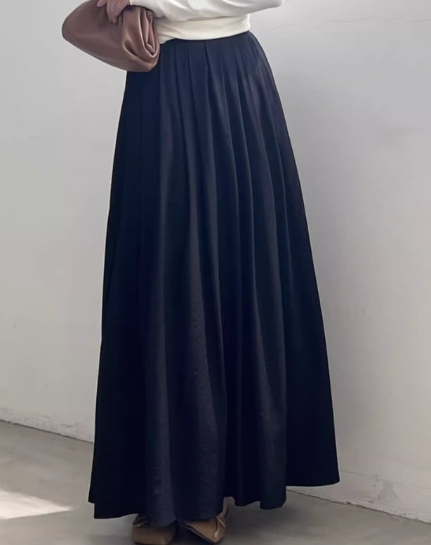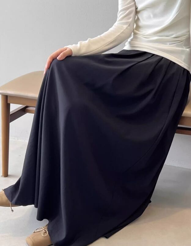 軽やかな落ち感とふっくらとしたシルエットを兼ね備えたこのスカートは、きれいめからカジュアルまで、さまざまなスタイルにマッチします。コーディネートしやすいカラーリングも魅力的なポイントです。幅広い年代の方におすすめの1枚です。