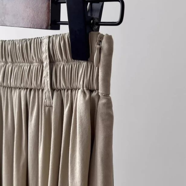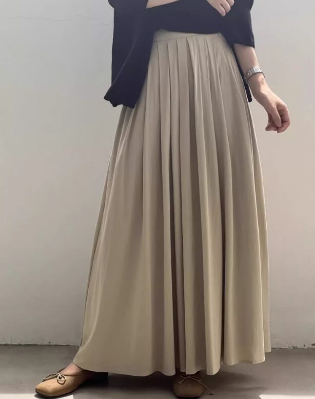 女性らしい魅力を引き立てる、上質感のあるプリーツスカートです。